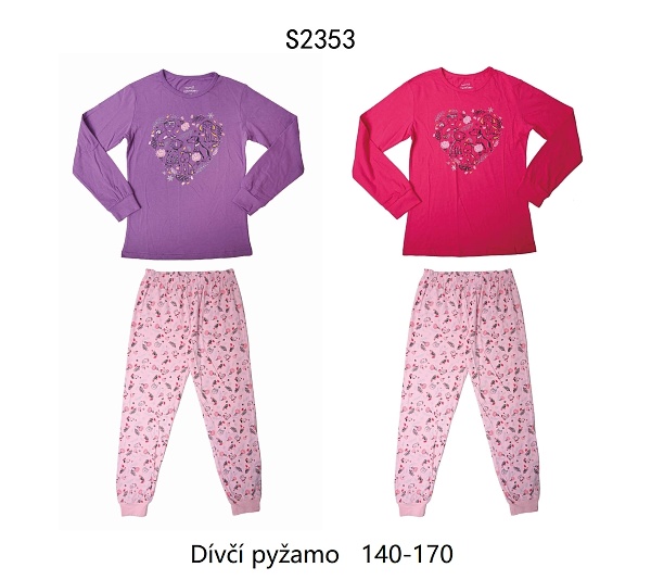 Dívčí noční pyžamo s dlouhým rukávem ve vel. 140-170